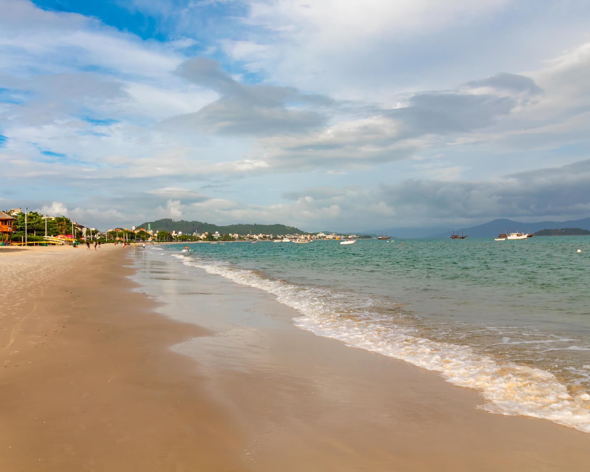 Cachoeira, a unos 30 kilómetros de Florianópolis, está en un ámbito que fue tradicionalmente agrario, pero esa vocación ha ido cambiando por influjo de la cercana Canasvieiras, si bien su estructura de calles amplias y una contenida cuota de edificabilidad le dan un aspecto de población tranquila y con calidad de vida. La playa de Cachoeira es excelente. arenas finas, un mar calmado, una luminosidad extraordinaria y un marco bellísimo. Sobre unas aguas claras en las que se refleja el cielo de azul intenso, aparece hacia el oeste Canasvieiras y la isla del Francés, con el continente como marco final, dibujando una arcada que se cierra por el lado opuesto con la Ponta das Canas.